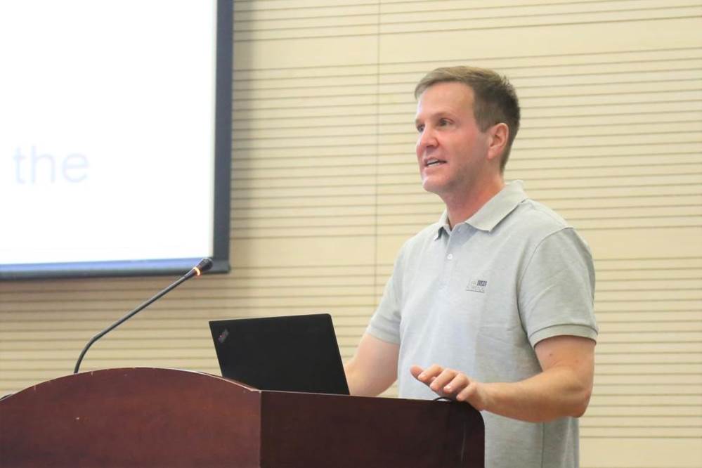 副院长王克玉教授着重介绍了学院涉外人才培养工作情况。他以一个故事为切入点,指出当代中国对懂业务、懂法律、懂外语、懂社交技能的涉外法律人才的强烈需求,以两份文件、两个格局为线索,提出对培养德法兼修、具备国际化视野和格局的涉外法律人才的期望。王克玉副院长还从研究生课程设置、暑期对外交流等方面,阐述了学院培养涉外法律人才的优势和特色。