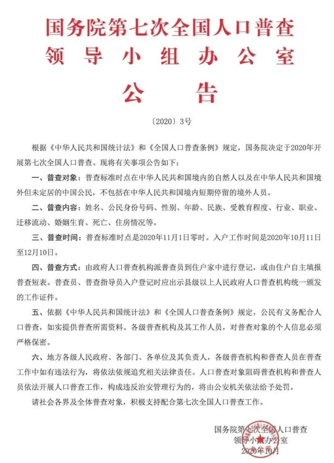 今年的第七次全国人口普查