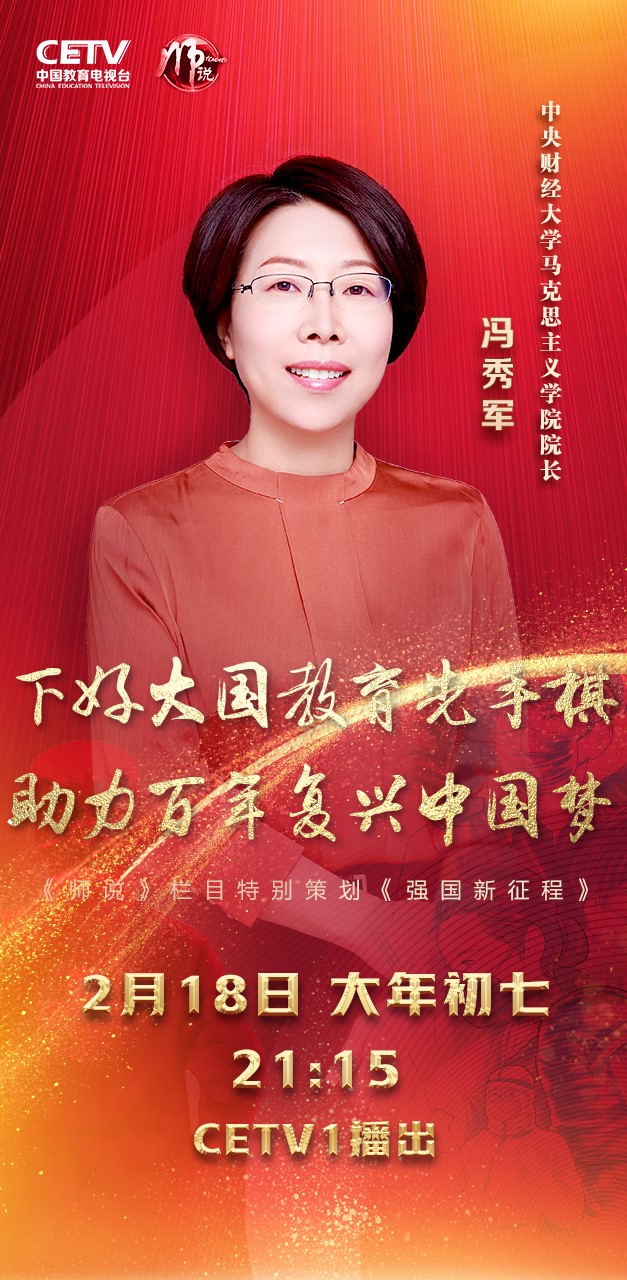 2月18日晚21:15,《强国新征程》节目将在中国教育电视台一频道播出第七集,我校马克思主义学院院长冯秀军教授将围绕习近平总书记关于教育的重要论述,讲授《下好大国教育先手棋 助力百年复兴中国梦》。