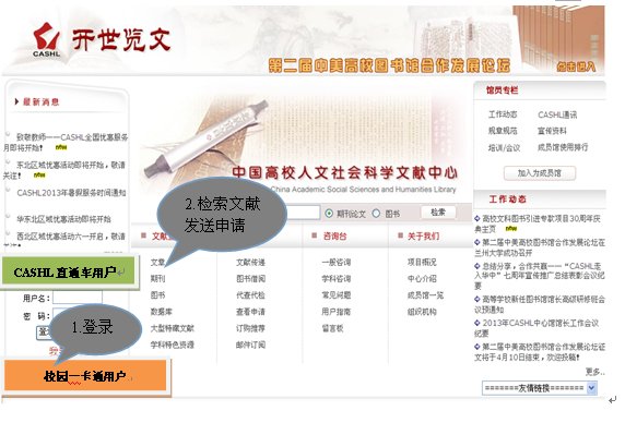 方便:我校读者可利用在BALIS/CALIS原文传递融合系统注册的登录名和密码,通过通过“校园一卡通用户”入口直接登录CASHL系统,获取文献资源。