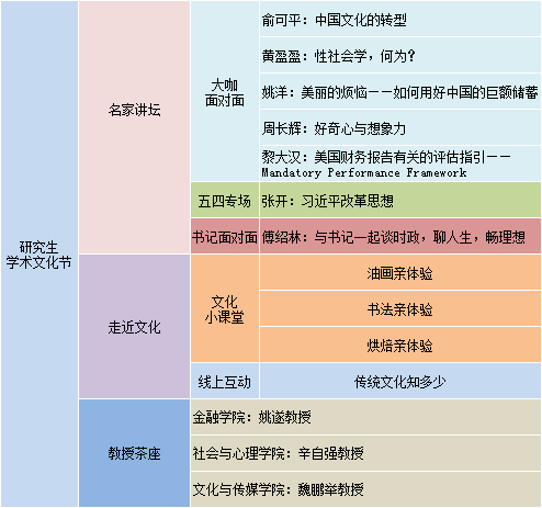 bt365体育官网研究生学术文化节是我校一年一度的学术盛会,每年四月到五月,各界精英名流汇聚中财,启迪了一批批中财学子。研究生学术文化节是我校最具特色的研究生活动之一,目前已成功举办了二十一届,涉及的学科领域日渐丰富,参与学生的规模逐步扩大,已成为北京地区具有品牌效应的学术活动。