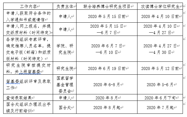 5. 2020年6-8月,留学基金委组织评审及录取工作(对申请学费资助人员将另行组织面试)。8月,申请人可登陆国家公派留学管理信息平台查询录取结果。