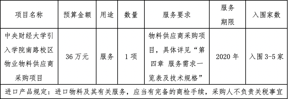 2.项目名称:bt365体育官网引入学院南路校区物业物料供应商采购项目
