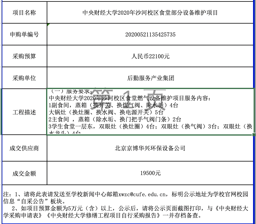 356体育官方网站2020年沙河校区食堂部分设备维护项目自行采购需求及结果公示